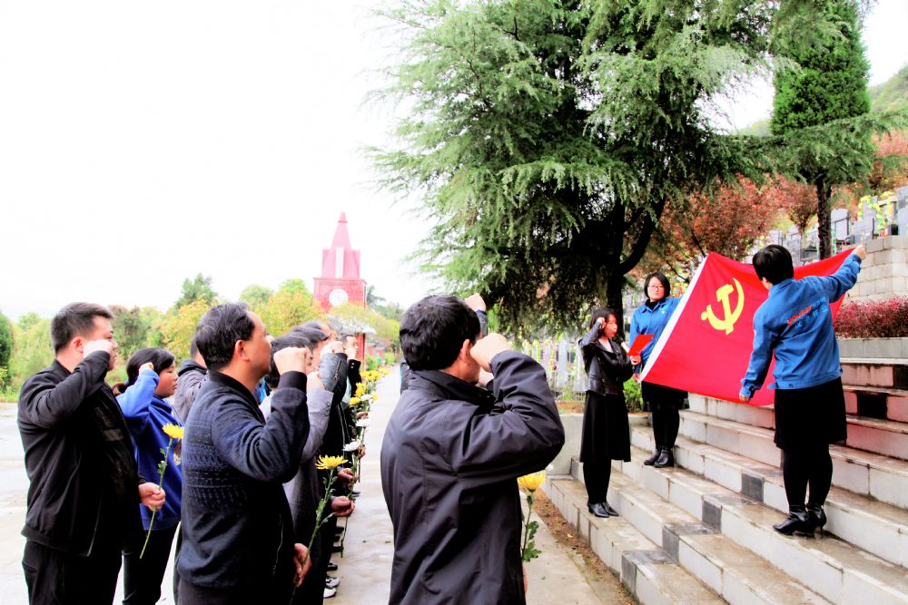 青山環(huán)繞,綠樹(shù)繁茂。大家懷著崇敬的心情,來(lái)到了莊嚴(yán)肅穆的勉縣烈士陵園,在革命烈士劉彩鳳墓前敬獻(xiàn)花籃、鞠躬、默哀、聆聽(tīng)革命烈士事跡,大家向烈士獻(xiàn)花致敬!在高高聳立的烈士紀(jì)念碑前,全體黨員面對(duì)黨旗重溫了入黨誓詞,堅(jiān)定理想信念,筑牢初心使命。
